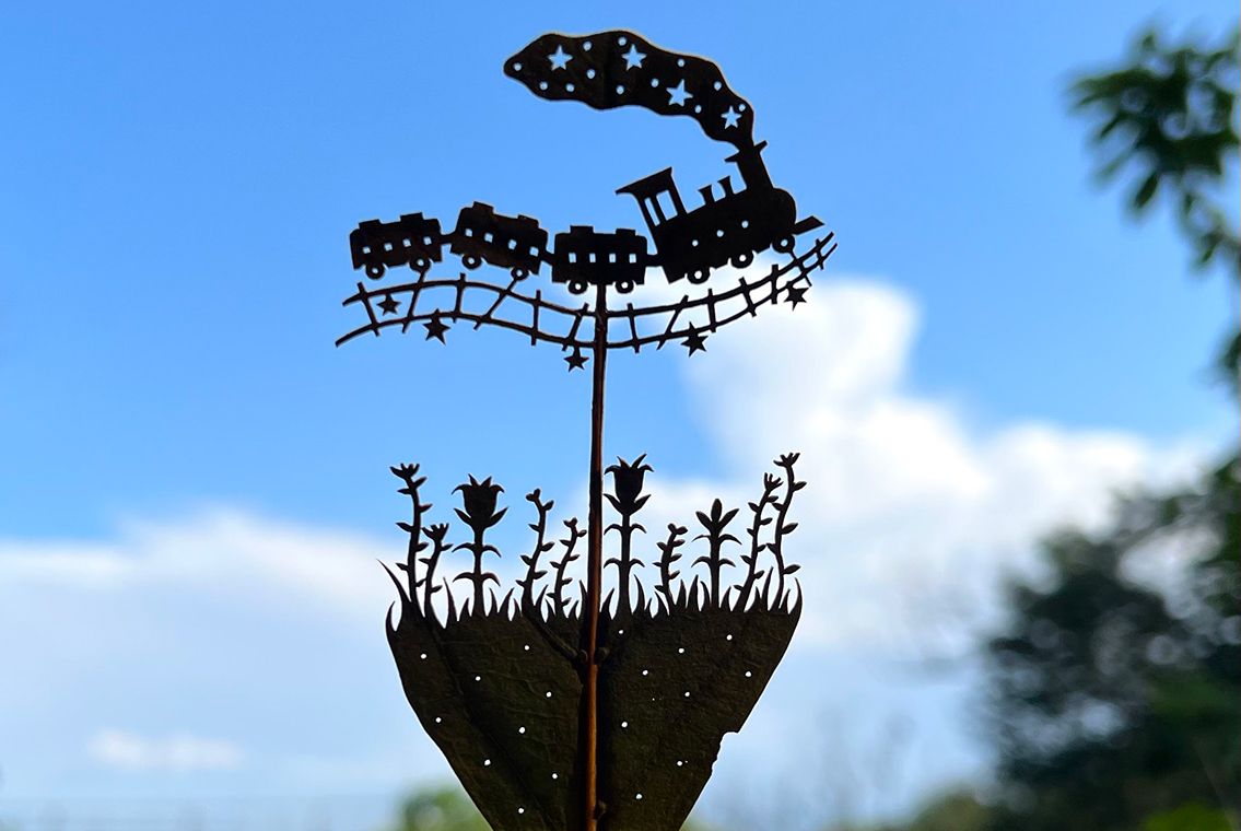 駅舎の中の展示スペースでは、葉っば切り絵アーティストLito氏の作品写真パネルを福島市飯坂町「リト リーフアートミュージアム福島」様のご協カで展示します。一枚の葉っばの上に広がる、優しくてどこかユーモラスな世界をお楽しみください。